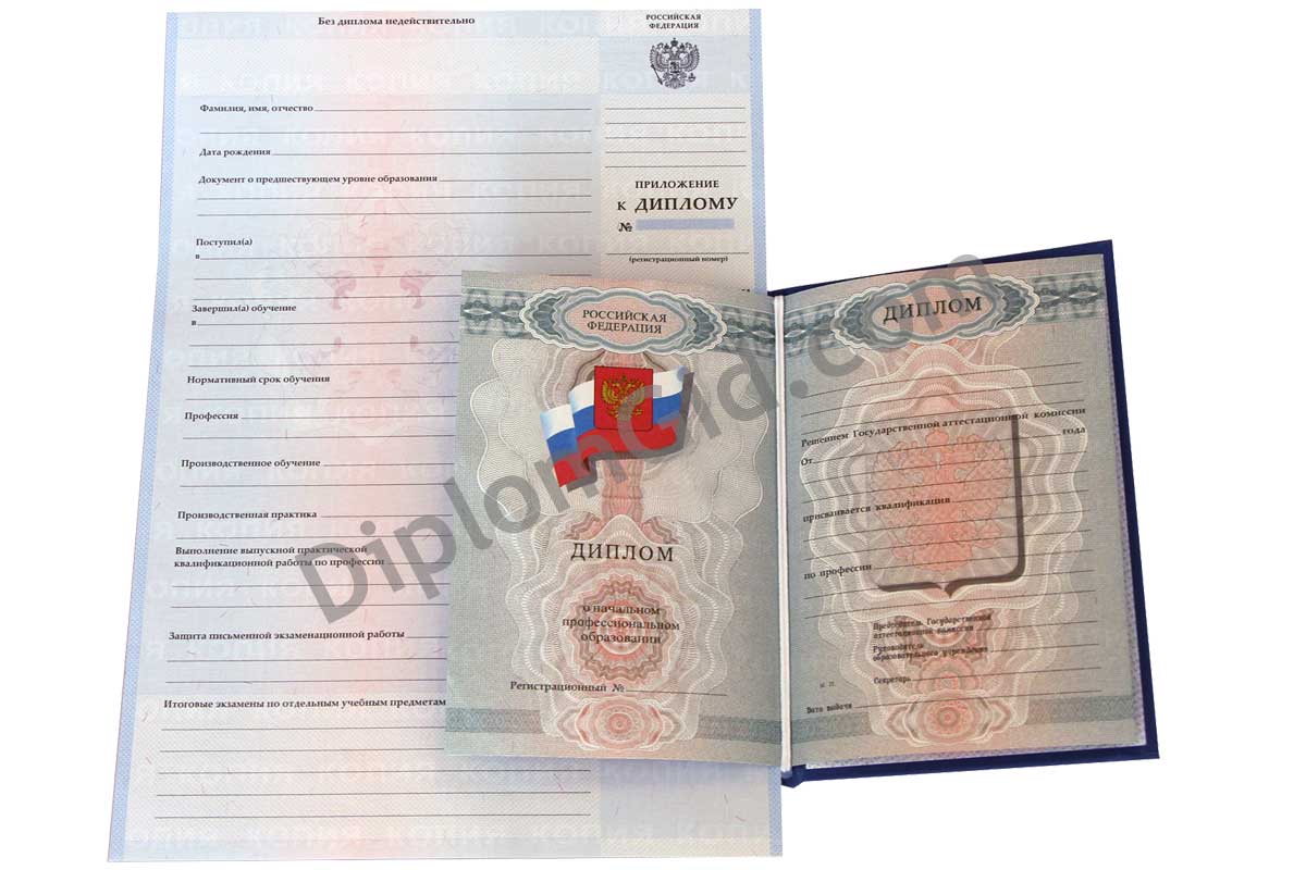 Диплом об окончании училища (диплом о начальном профессиональном образовании) в 2007, 2008, 2009, 2010 годах на государственном бланке (Гознак). Настоящий диплом со всеми степенями защиты.