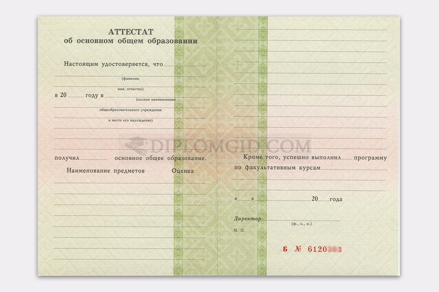 Аттестат об основном общем образовании (за 9 класс) необходим для перехода в среднее профессиональное образование (техникумы, колледжи и т.д.), он подтверждает, что вы освоили базовую программу обучения и готовы к получению более глубоких знаний или профессиональных навыков. Предлагаем купить аттестат об окончании любой школы России с нужными Вам оценками оценками. Ниже представлены образцы и цены документов по годам выдачи.