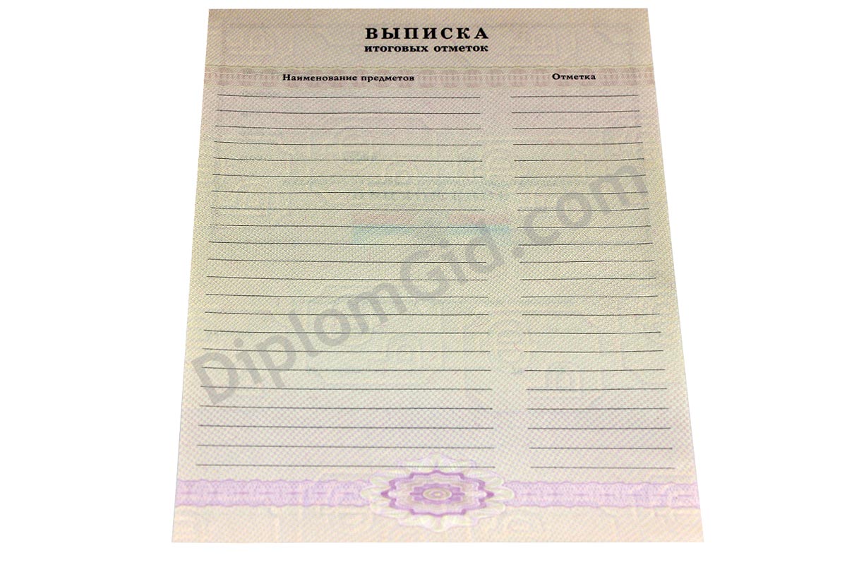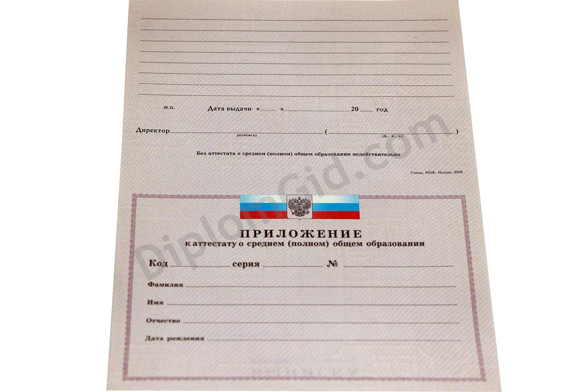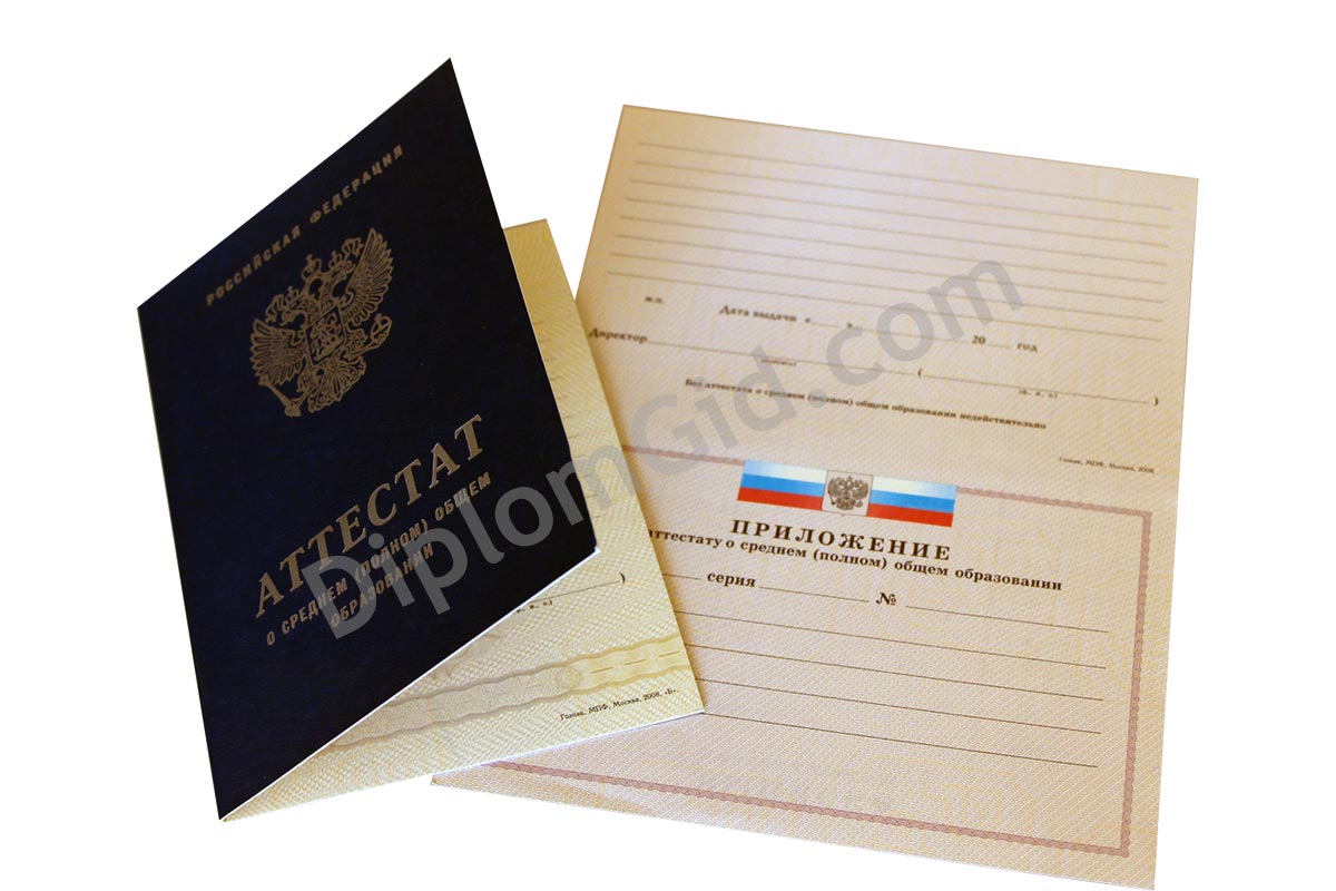 Аттестат школы об окончании 11 классов на государственном бланке ГОЗНАК со всеми предусмотренными степенями защиты. Выдача в 2007, 2008, 2009 годах.