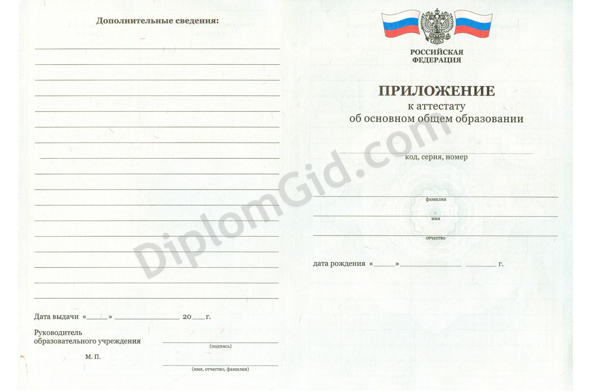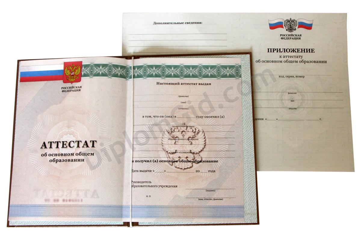 Аттестат школы об окончании 9 классов< на государственном бланке ("Гознак" со всеми степенями защиты). Выдача в 2010, 2011, 2012, 2013 годах.