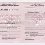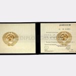 Диплом о высшем образовании СССР до 1996 года. Комплект: диплом, приклеенный к обложке, приложение. Качество: Гознак