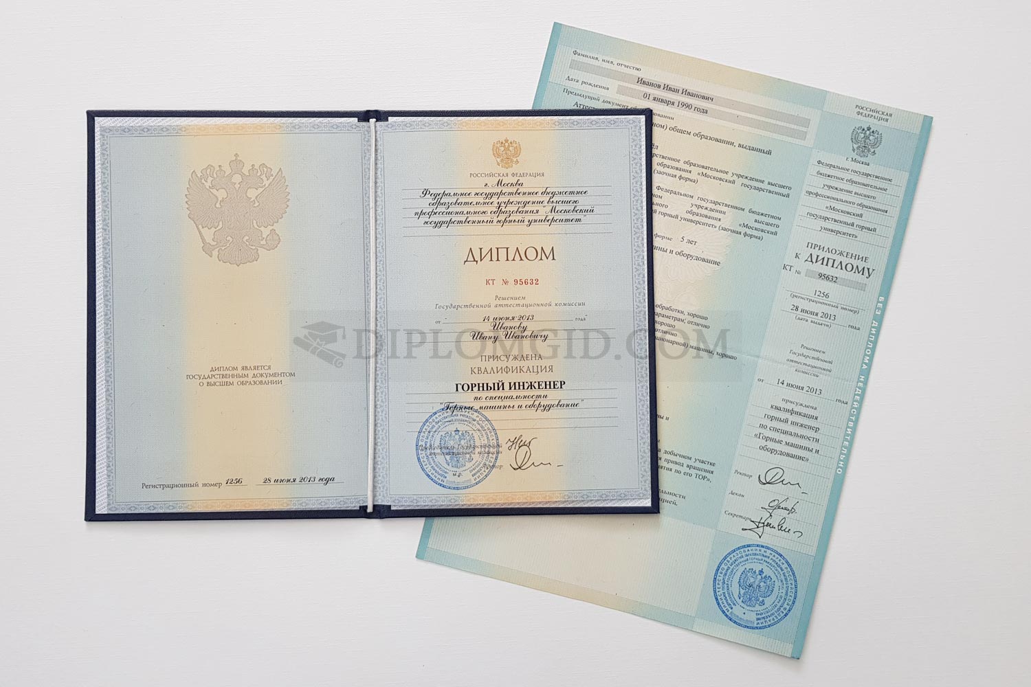 Диплом о высшем образовании 2012-2013 года. Комплект: диплом, обложка, приложение. Качество: Гознак