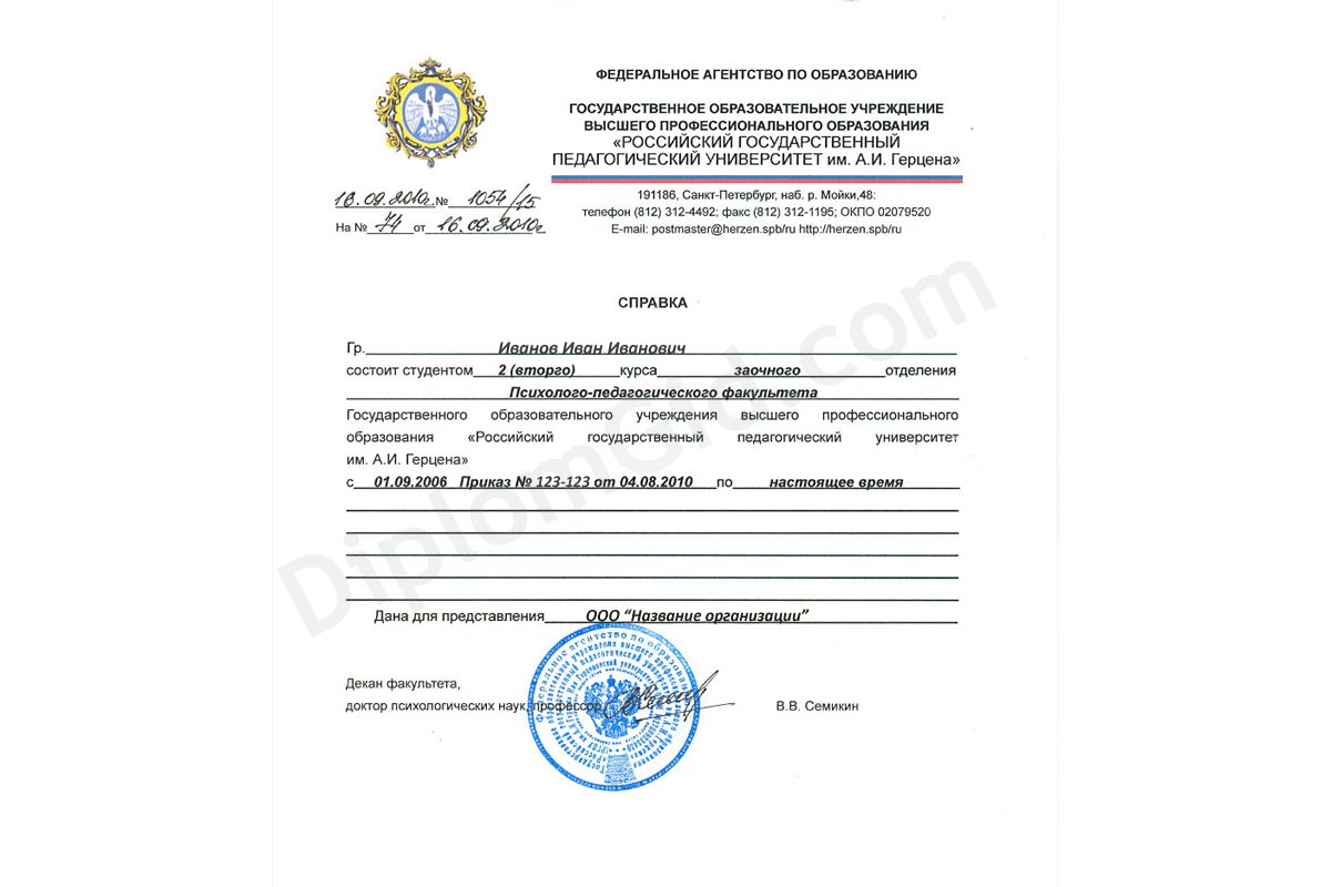 Справка об обучении в ВУЗе, ССУЗе, Школе